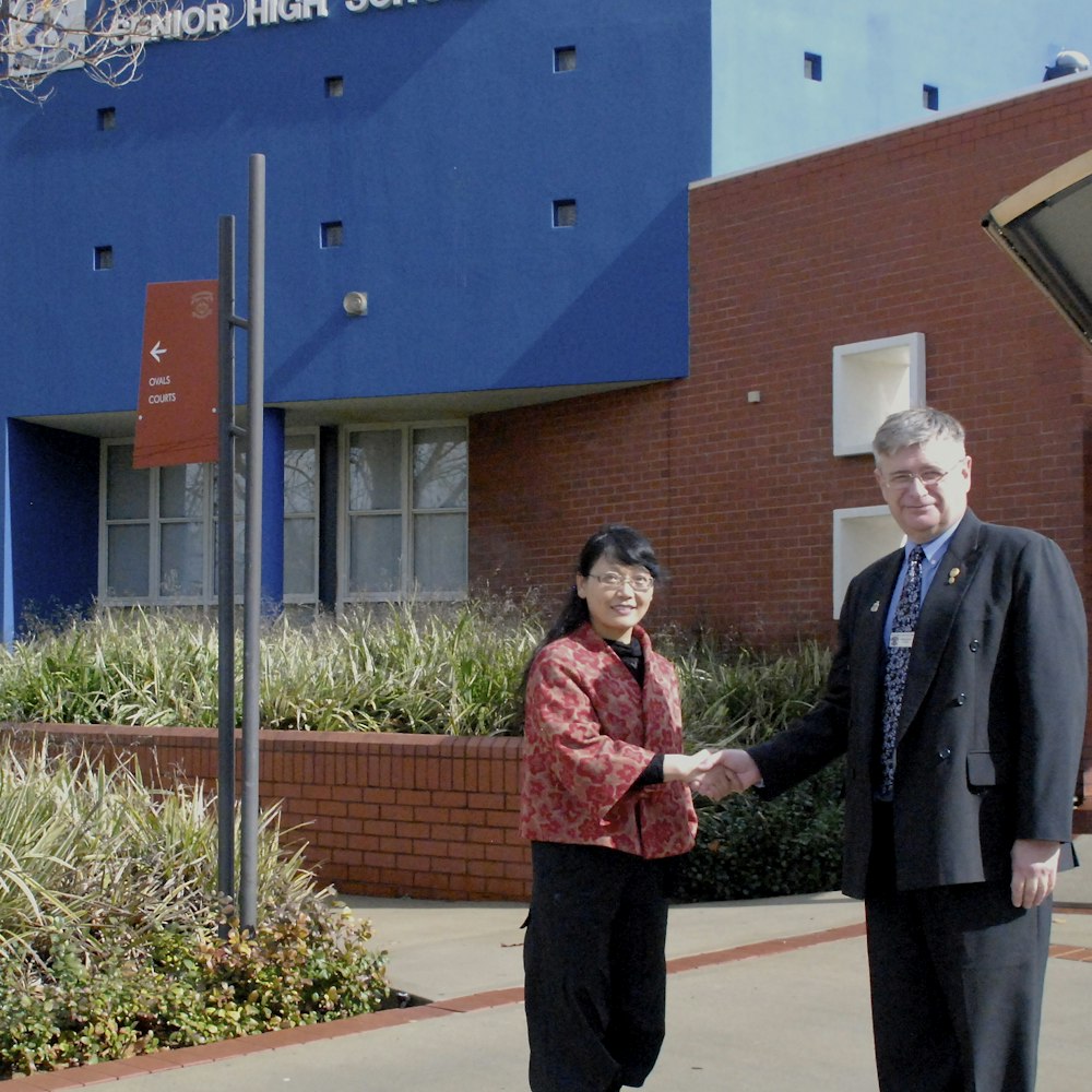 Catherine Wu is welcomed to the school by the principal Milton Butcher. Catherine is an English teacher at Mount Lawley's Sister School, Hangzhou No 14 in Hangzhou city. In fact, Hangzhou No 14 has been Mount Lawley's sister school since 1999 making it the longest Chinese sister school relationship in WA.