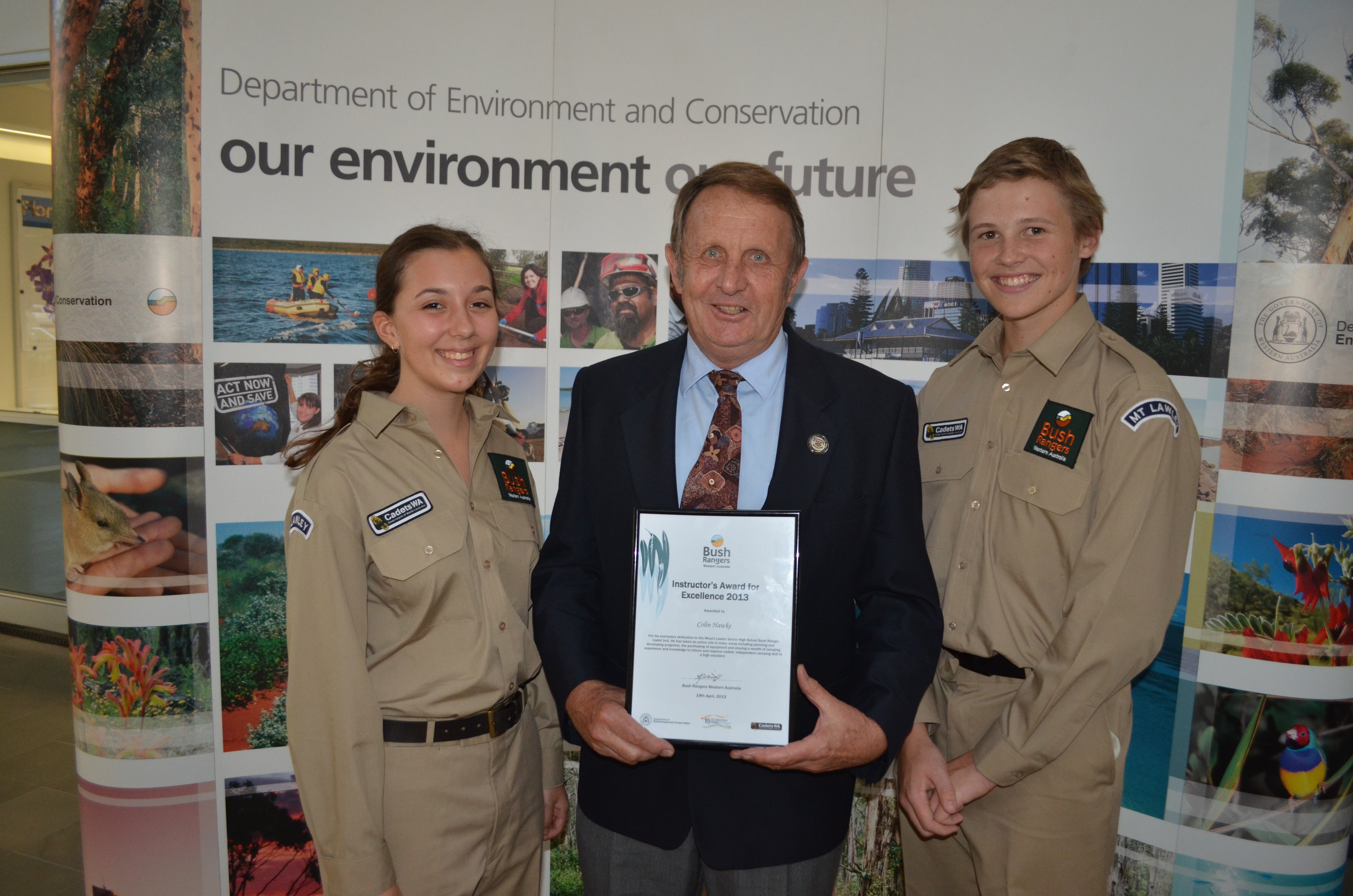 The Hon. Tony Simpson MLA, Minister for Local Government; Community Services; Seniors & Volunteering; Youth (with responsibility for the Cadets WA program) presented Colin with an Instructors Excellence Award in recognition of his exemplary dedication and active role in Mount Lawley Senior High Schools Bush Rangers Unit over the past 4 years and as such, the Bush Rangers WA program more broadly.