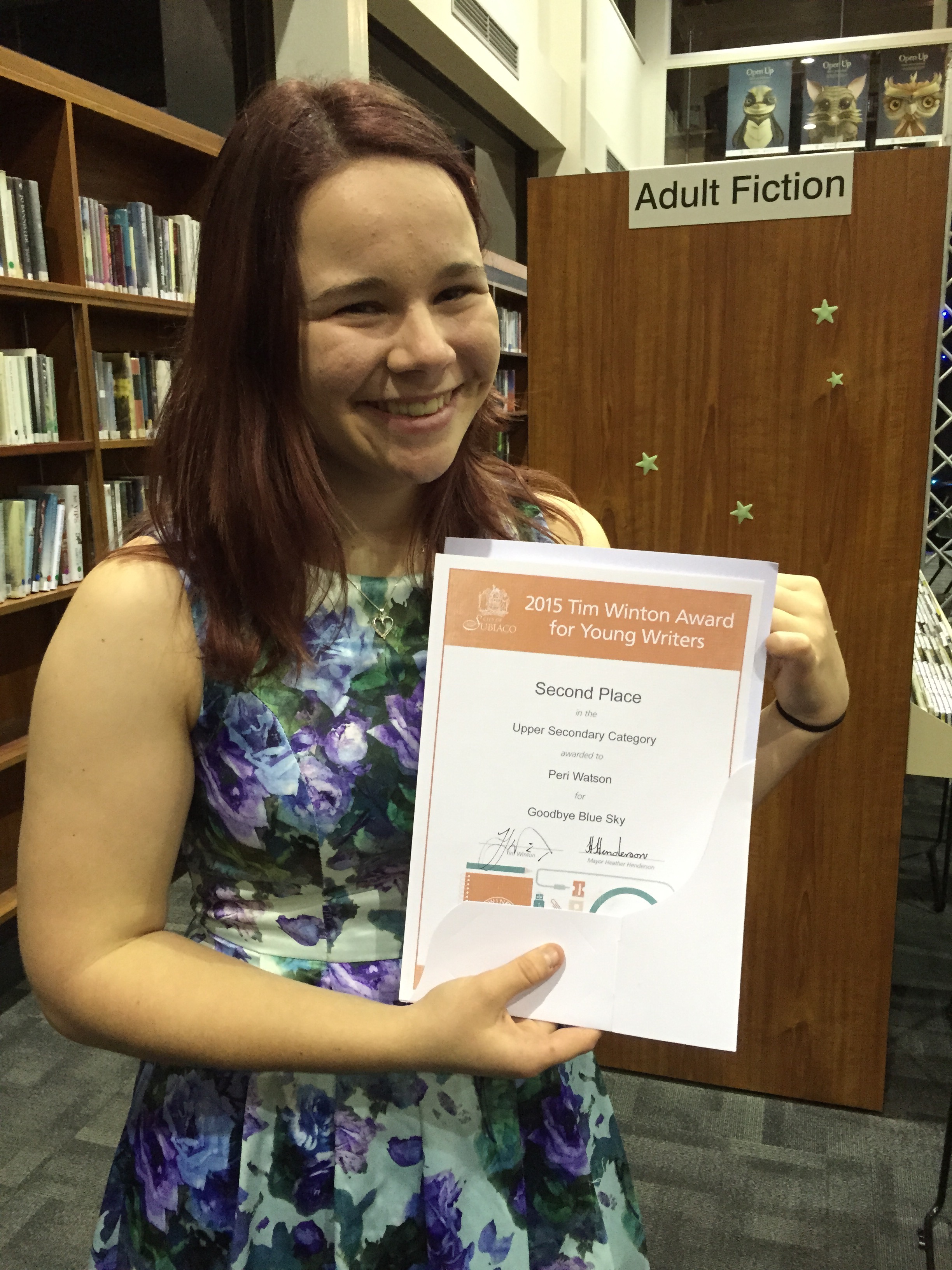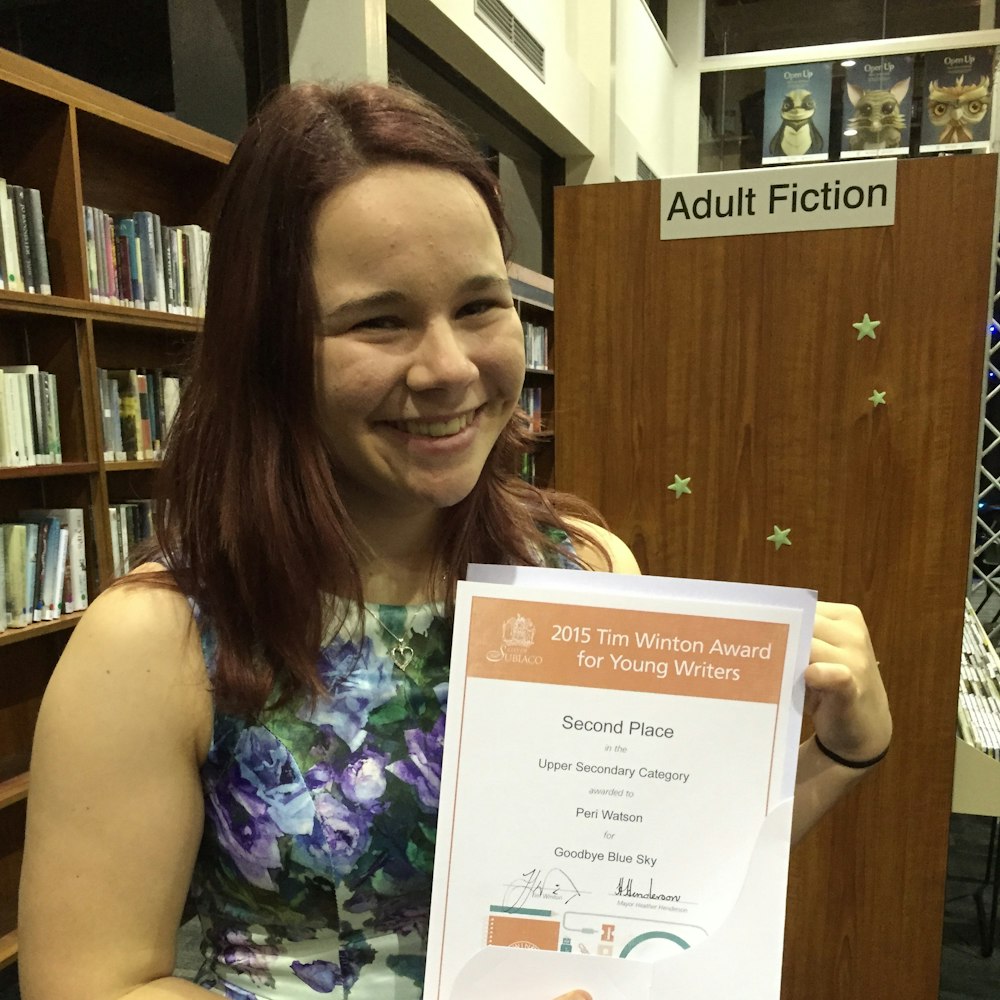 Congratulations to Peri (Year 11) who last night was awarded Second Place in the Upper Secondary Category of the 2015 Tim Winton Award for Young Writers.