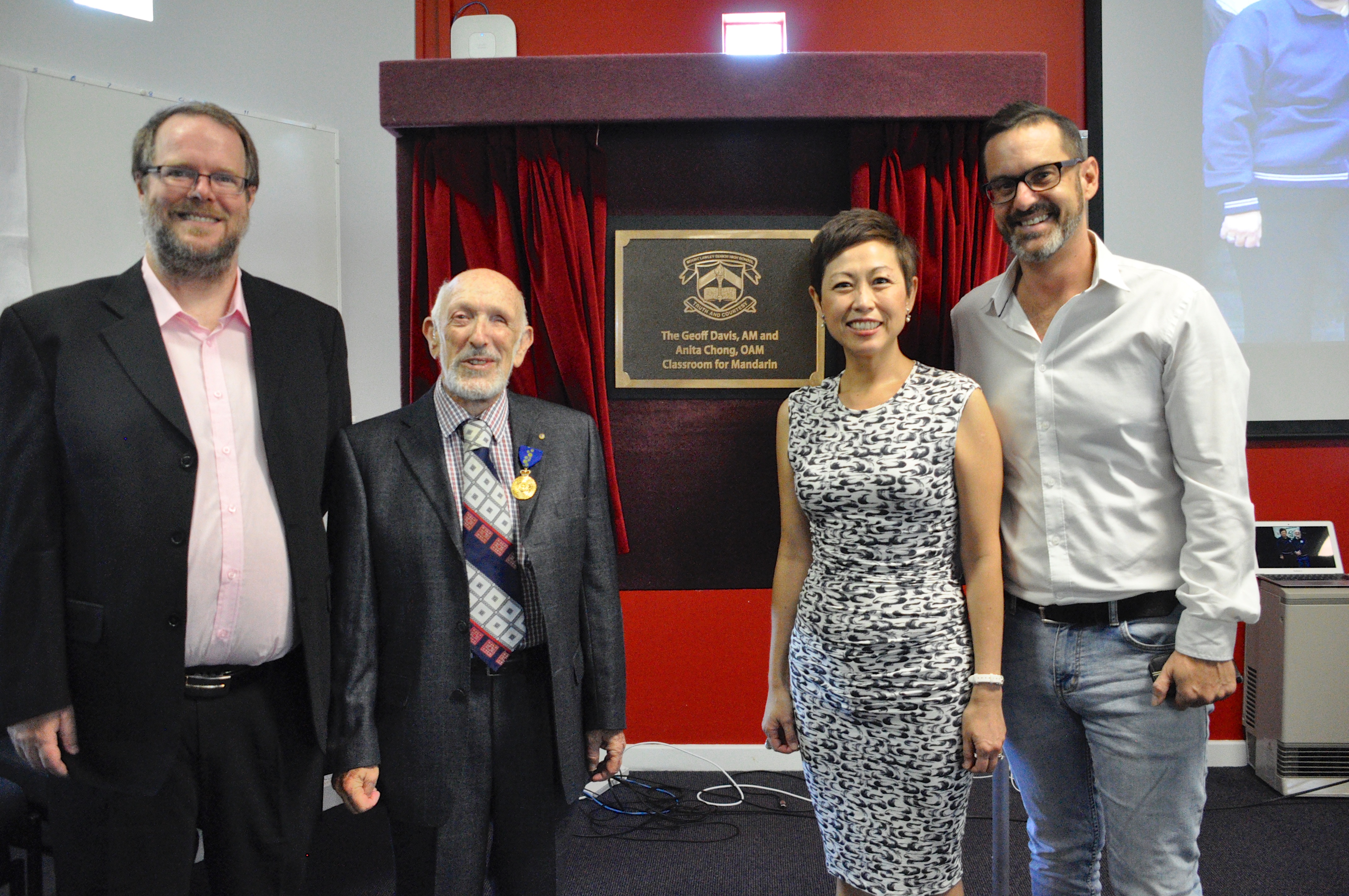 Her Excellency The Honourable Kerry Sanderson AO, Governor of Western Australia, and representatives from the Department of Education, Chinese Consul, Confucius Institute, Professional Associations, Chung Wah Association, previous students and special guests were invited to commemorate the long time services of Geoff Davis AM and Anita Chong OAM in the official ceremony marking the unveiling of a classroom for the teaching of Chinese.