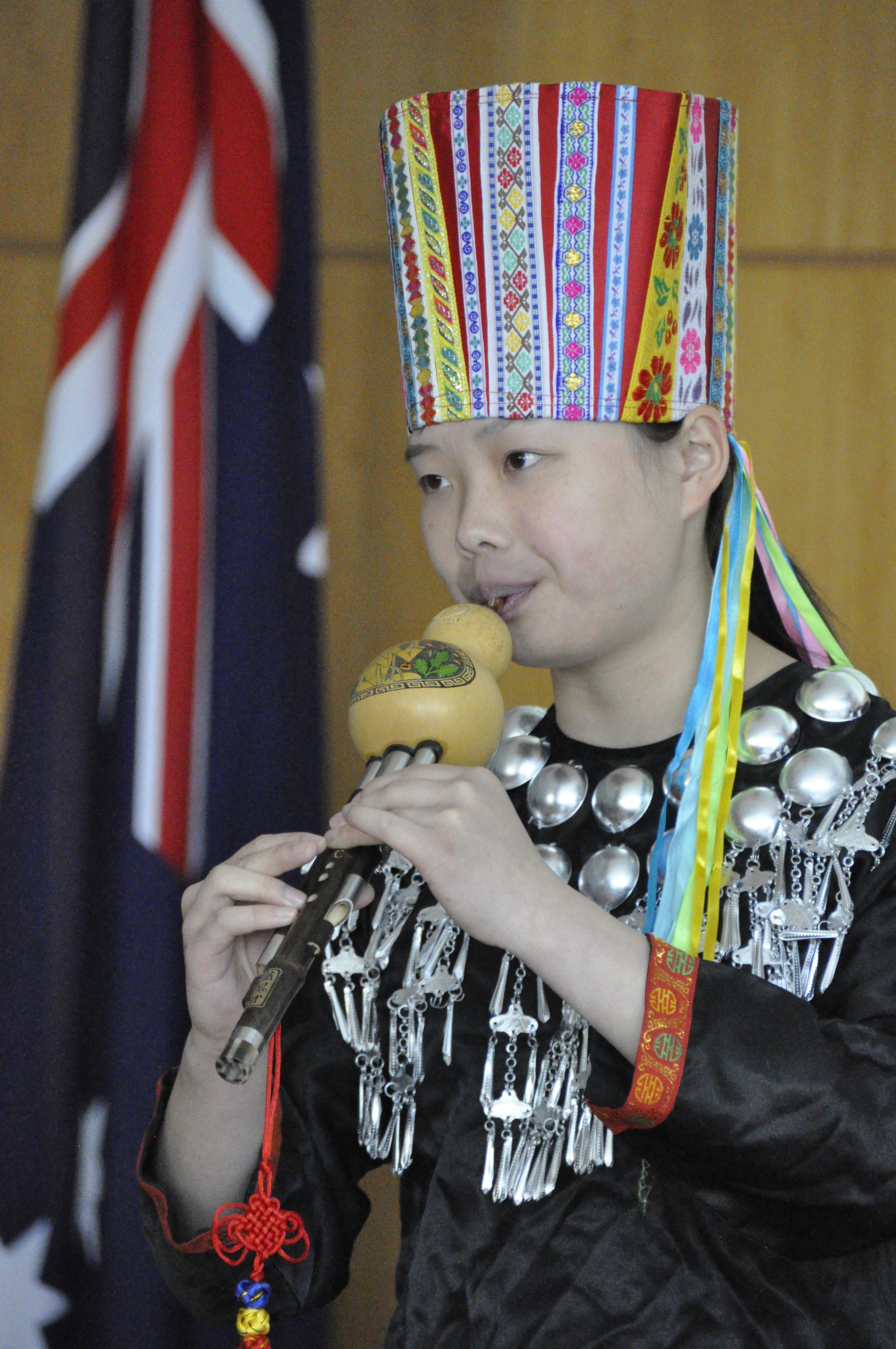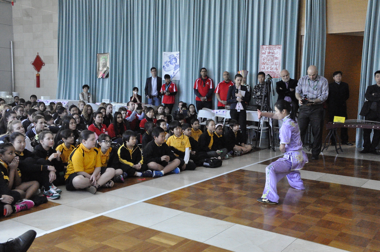 The Confucius Institute, UWA students and other performers provided the audience with a variety of arts performances such as the Bamboo flute, the Cucurbit/Hulusi Flute (3 vertical bamboo pipes which pass through a gourd), a famous traditional Dai (minority Ethnic Group) dance called the white Peacock. Students watched a student from Confucius Institute showed her fast skills of kung fu to the audience.