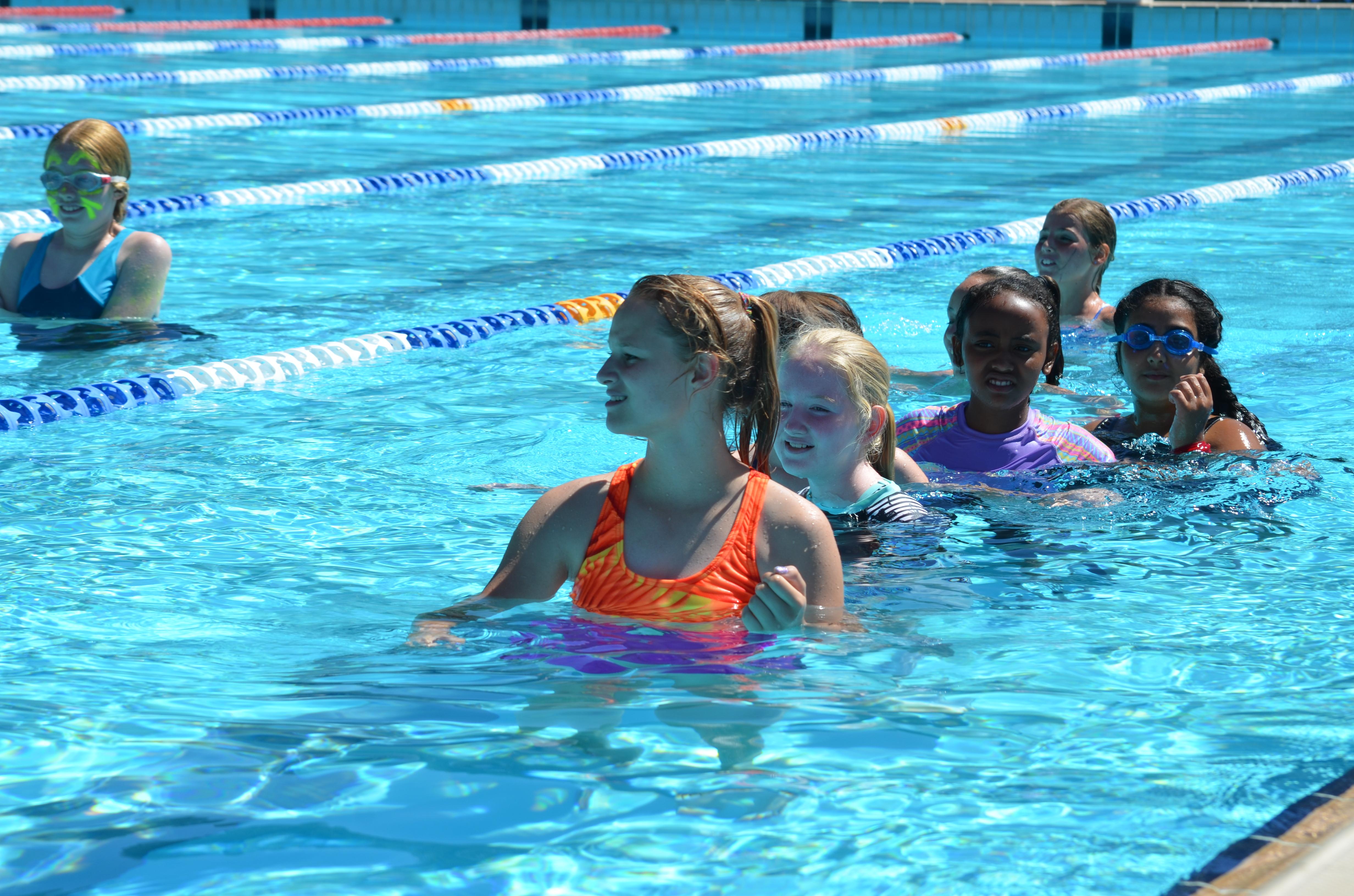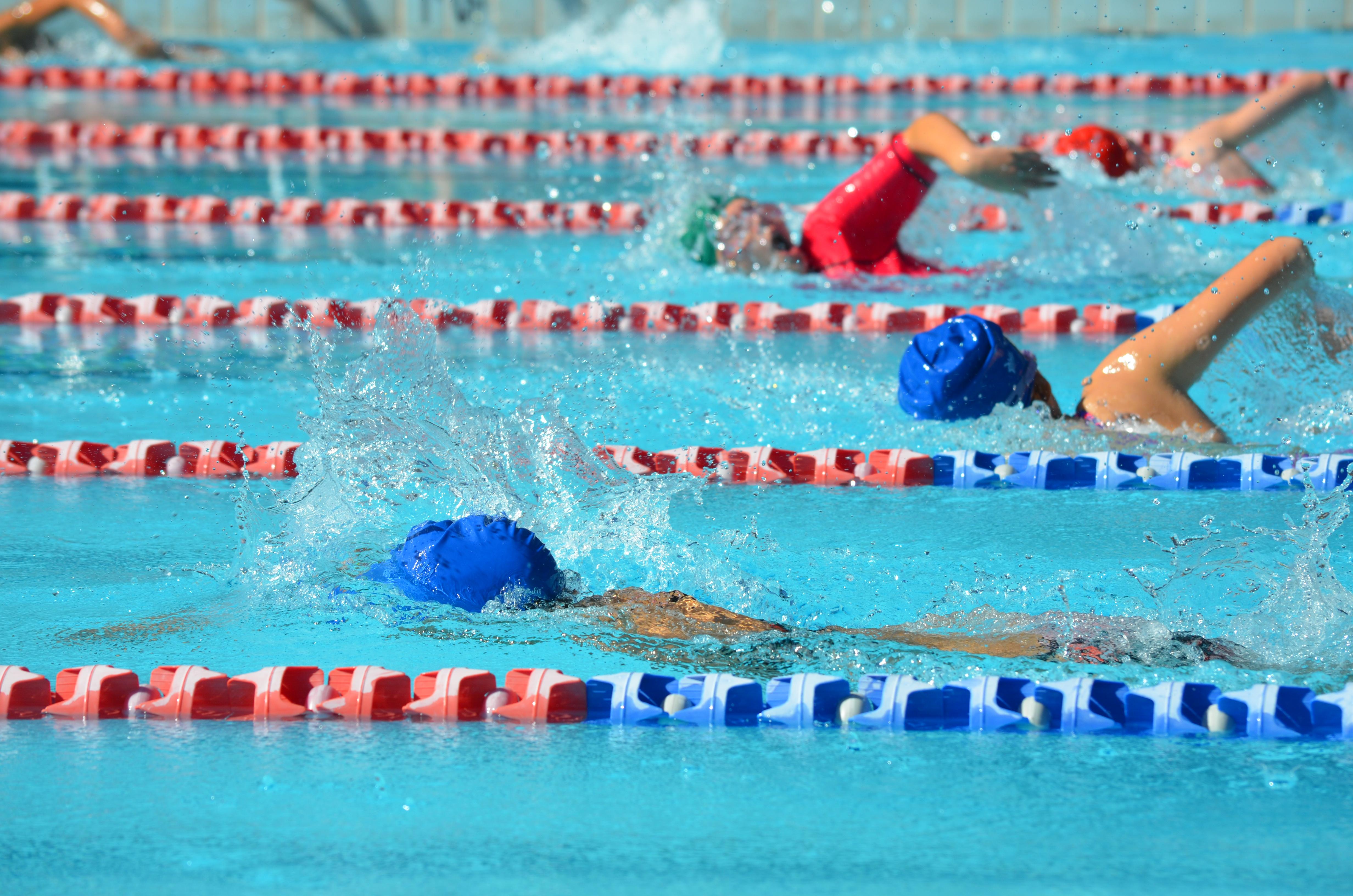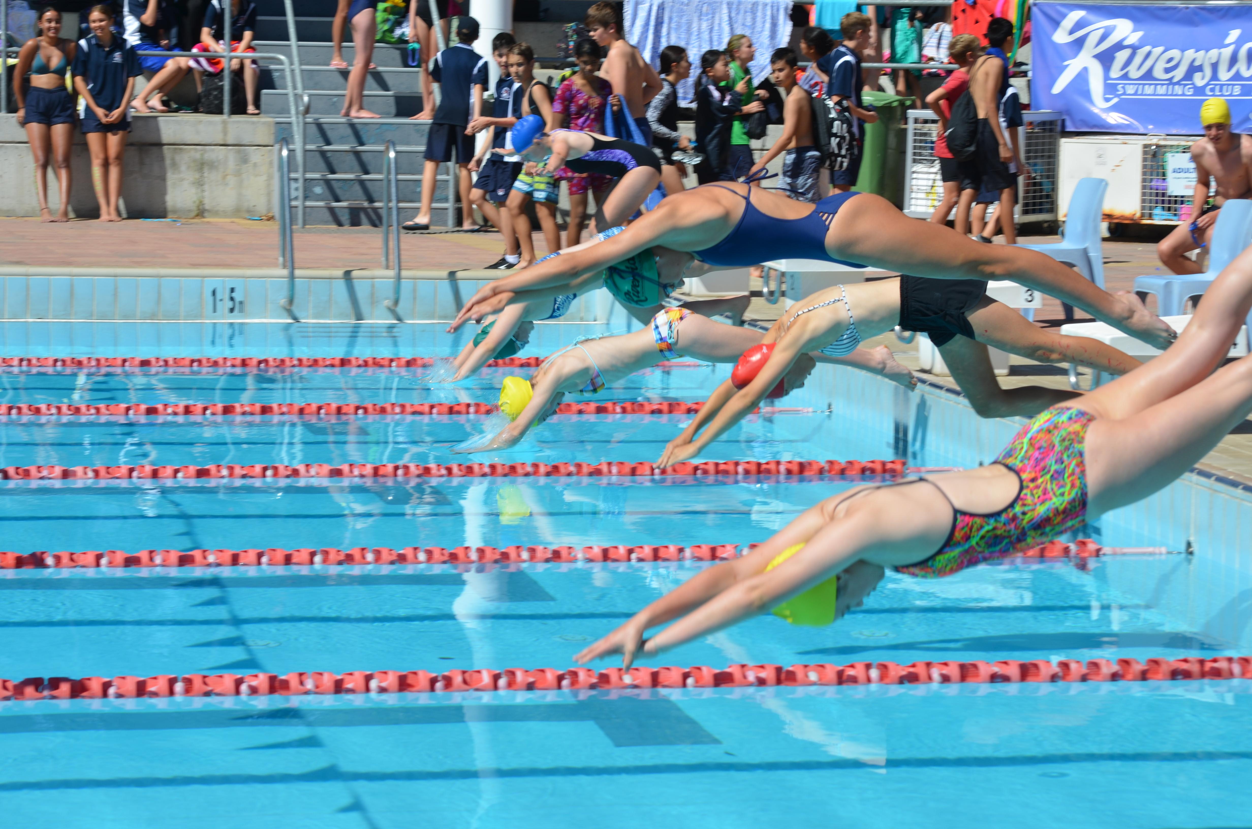 The main pool hosted swimming events all day with the adjacent pools being used for a combination of various novelty events.