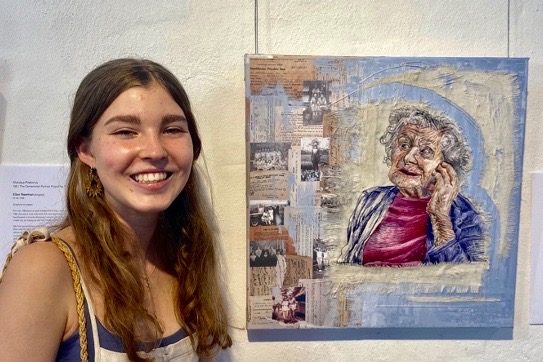 Shirin, Ripley and Jasmine participated in the Centenarian Portrait Project by Teenagers, an intergenerational community led project where teenage artists profile centenarians culminating in the creation of a memorable portrait and art exhibition held at the Wilkinson Gallery (Claremont Showgrounds) on 17th December 2022. The project was an opportunity to meet a centenarian for the first time and a chance for centenarians to share their life stories. The teenage artists visited their 100-year-old subjects' numerous times creating sketches and taking photos to establish a portrait approach. Following these get-to-know-you sessions the artists returned to their studios to complete their portrait.