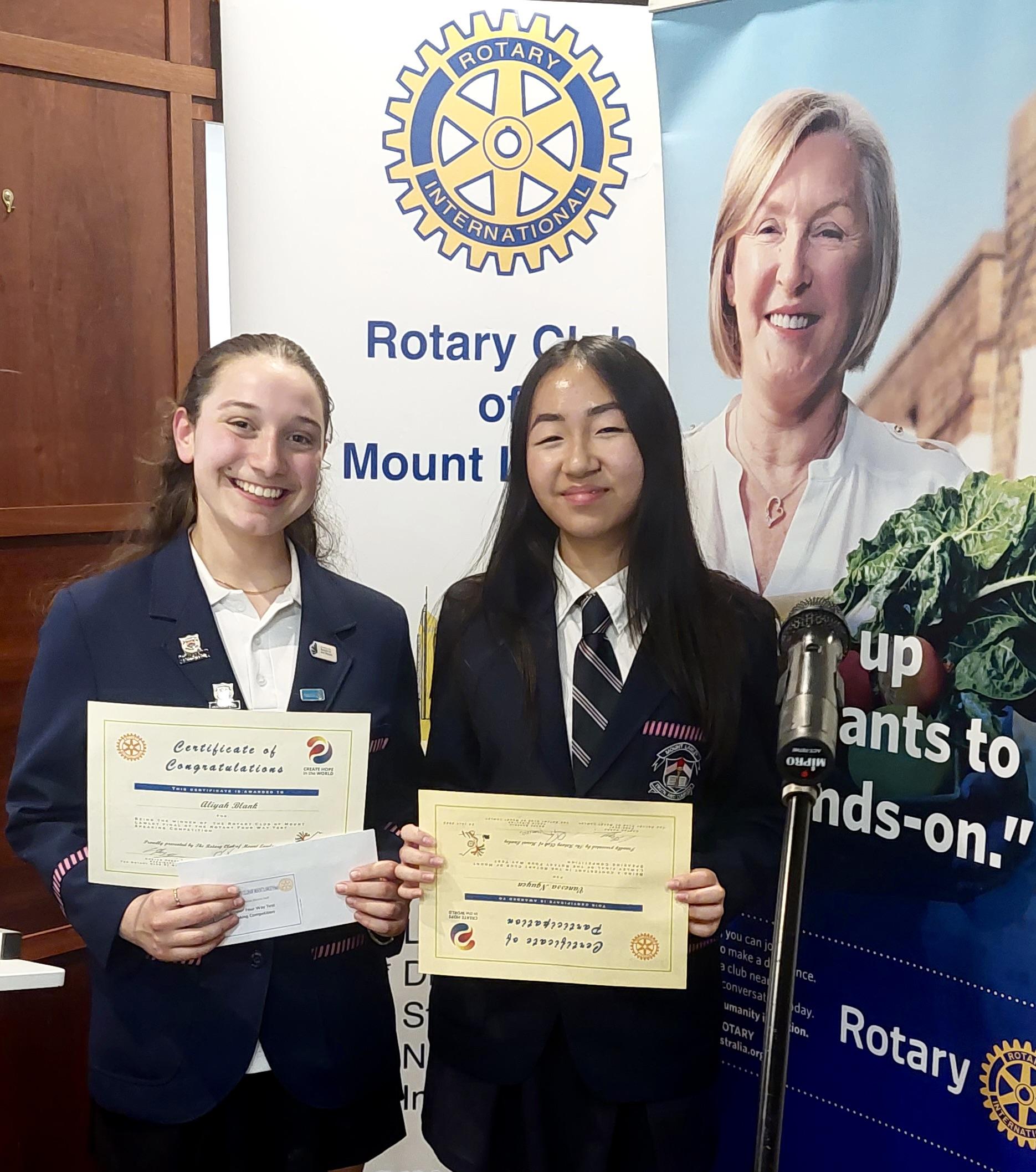 Both students did the school proud by presenting engaging, passionate and polished speeches. The speeches were first presented in their Year 10 English Academic Extension class and carefully edited to match the exacting Rotary Four Way Test requirements.