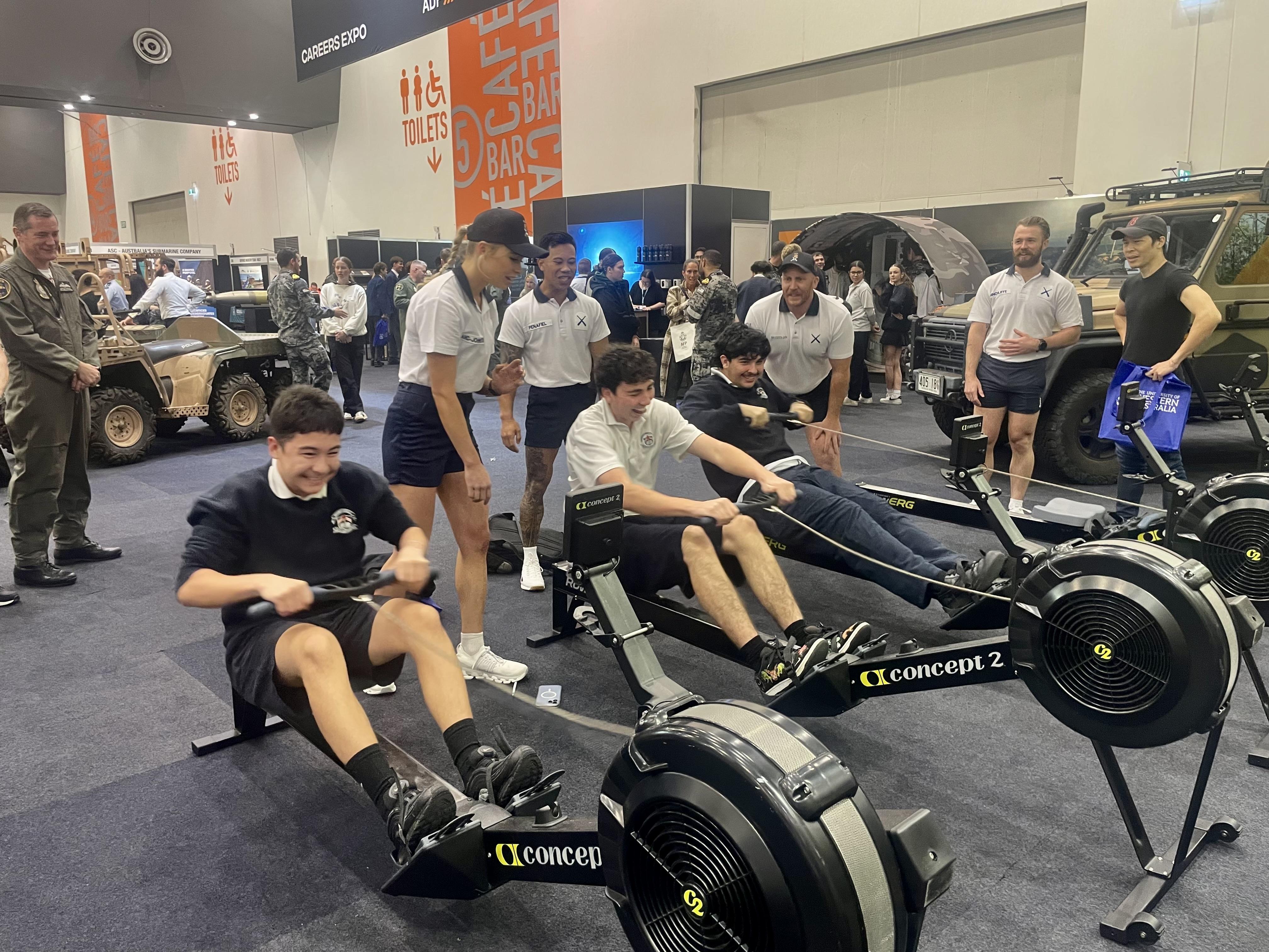 Year 11 and Year 12 Career and Enterprise had the amazing opportunity to attend the SkillsWest Career Expo in Term 3. Students engaged with over 160 organisations about study options, job opportunities, and application processes. There were many exciting things for students to do and participate in, including the Defence Force rowing machine competitions, where students competed against each other, and Ms McGrath triumphed over Ms Wilshire.